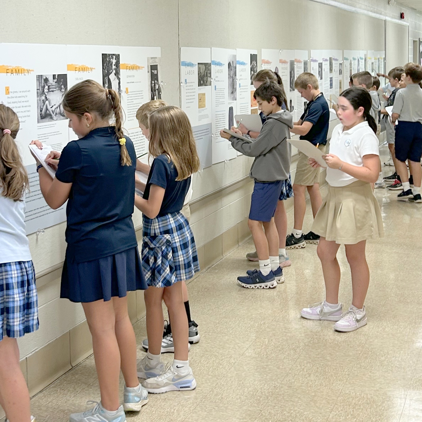 This week, Wilson Hall is honored to host Stars Without a Heaven: Children in the Holocaust, a moving 27-panel traveling exhibit on display in the 300 Building. On loan from the South Carolina Council on the Holocaust and coordinated by librarian Mrs. Hayes Jones, the exhibit shares the stories of children who lived through the Holocaust, captured through drawings, poems, letters, and toys. While 5th-grade classes will study it as part of their curriculum, the age-appropriate content offers meaningful insight for middle school, high school, and adult audiences alike.