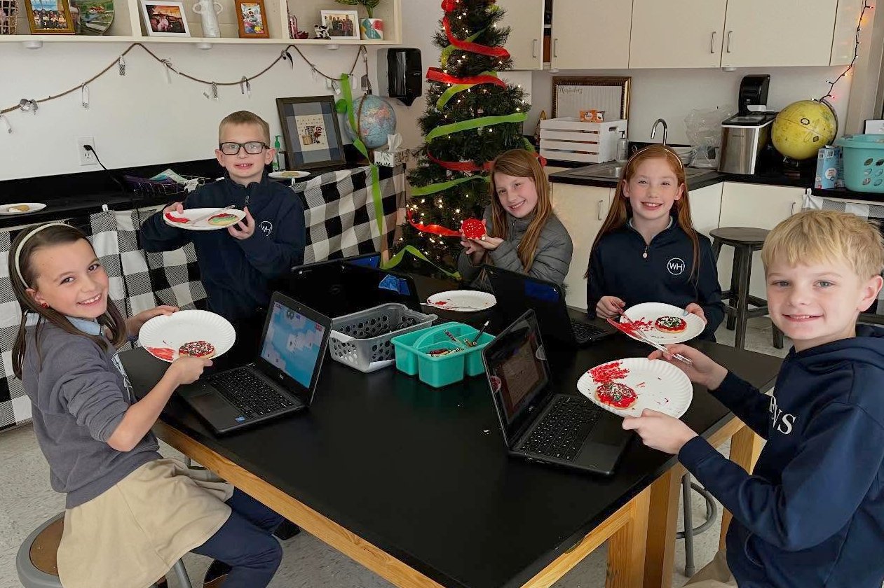 Bringing creativity to life, lower school computer science students turned a fun STEAM project into a sweet hands-on experience as they designed sugar cookies on Google Jamboard in Mrs. Emma Ayres’s class. After Mrs. Ayres baked real cookies to match their digital designs, students decorated their treats, snapped cookie selfies on their Chromebooks, and enjoyed every bite of their edible creations.
