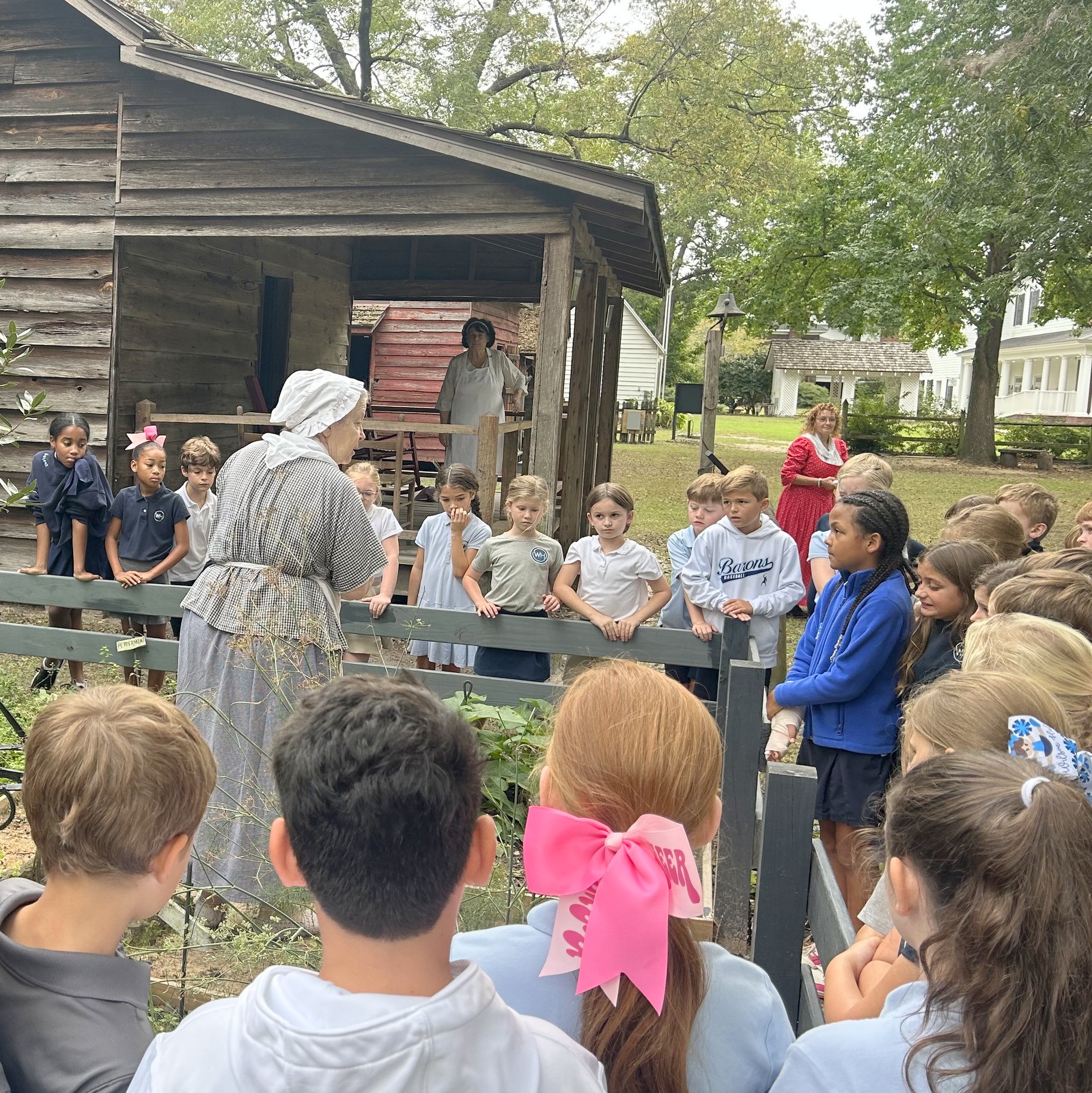 Exploring local history through hands-on learning, third grade students visited the Sumter County Museum to deepen their understanding of our community’s past. A puppet show presented by the Sumter Junior Welfare League introduced key historical figures and events in an engaging, age-appropriate format. Students then toured the backcountry homestead, where authentic structures such as a settler’s house, commissary, blacksmith shop, and loom house brought early 19th-century life to life, reinforcing classroom lessons through immersive, real-world experience.