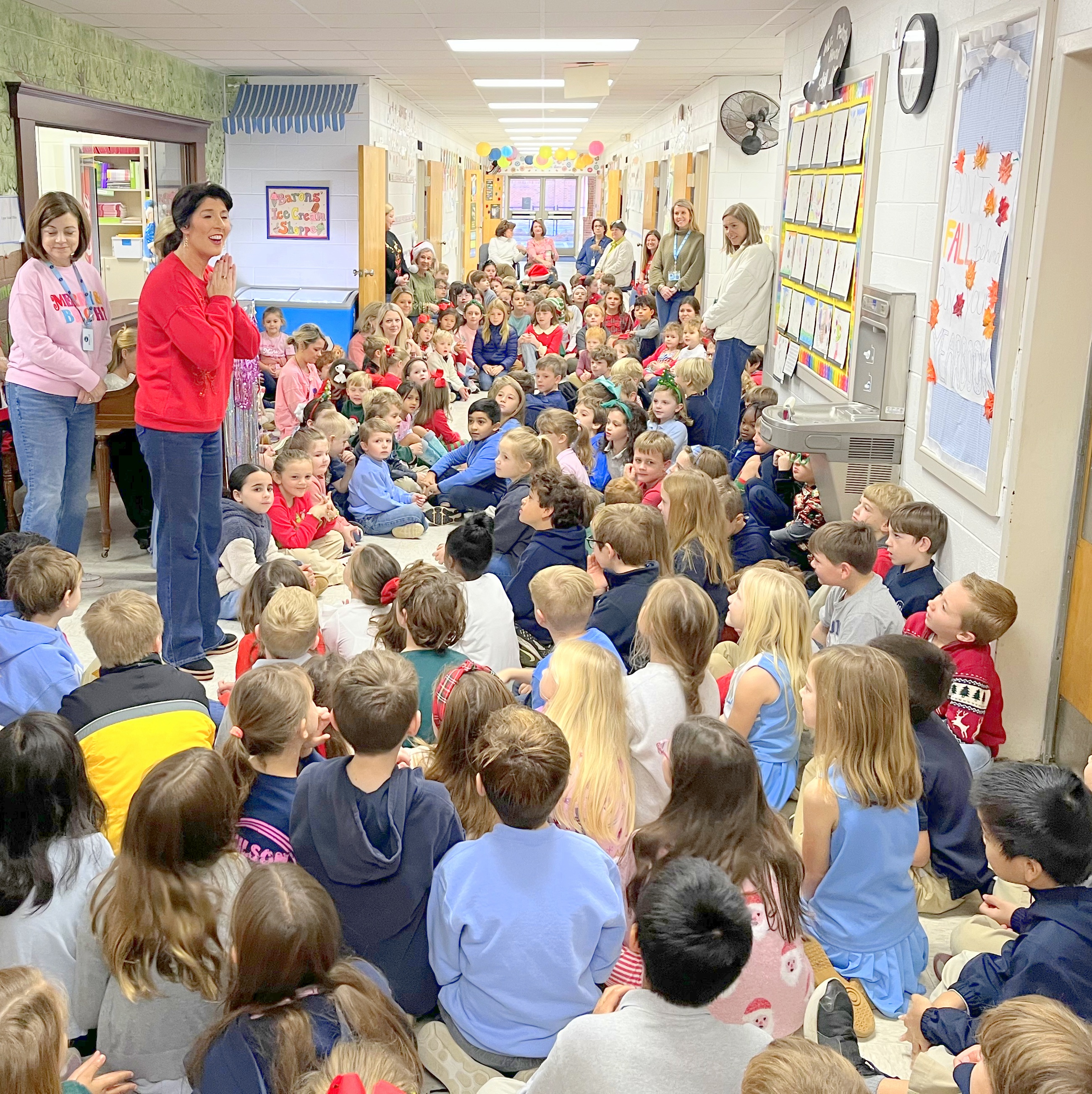 Lower School students filled the standing-room-only Nash Student Center with holiday spirit as Mrs. Julia Sims-Owens led a joyful program of festive music and fun. Guests entered through a foyer decorated with holiday art created by students in Mrs. Renee Norton’s classes. Highlights included Joy to the World, a reverent Nativity scene set to Silent Night, the humorous Everlasting Fruitcake, and a dazzling light show to Trans-Siberian Orchestra’s Christmas Eve. The finale, The Children of Christmas, featured choreography by Mrs. Jen Reimer of Miss Libby’s School of Dance and a surprise visit from Santa. The program closed with a prayer, bringing a warm and meaningful end to the celebration.