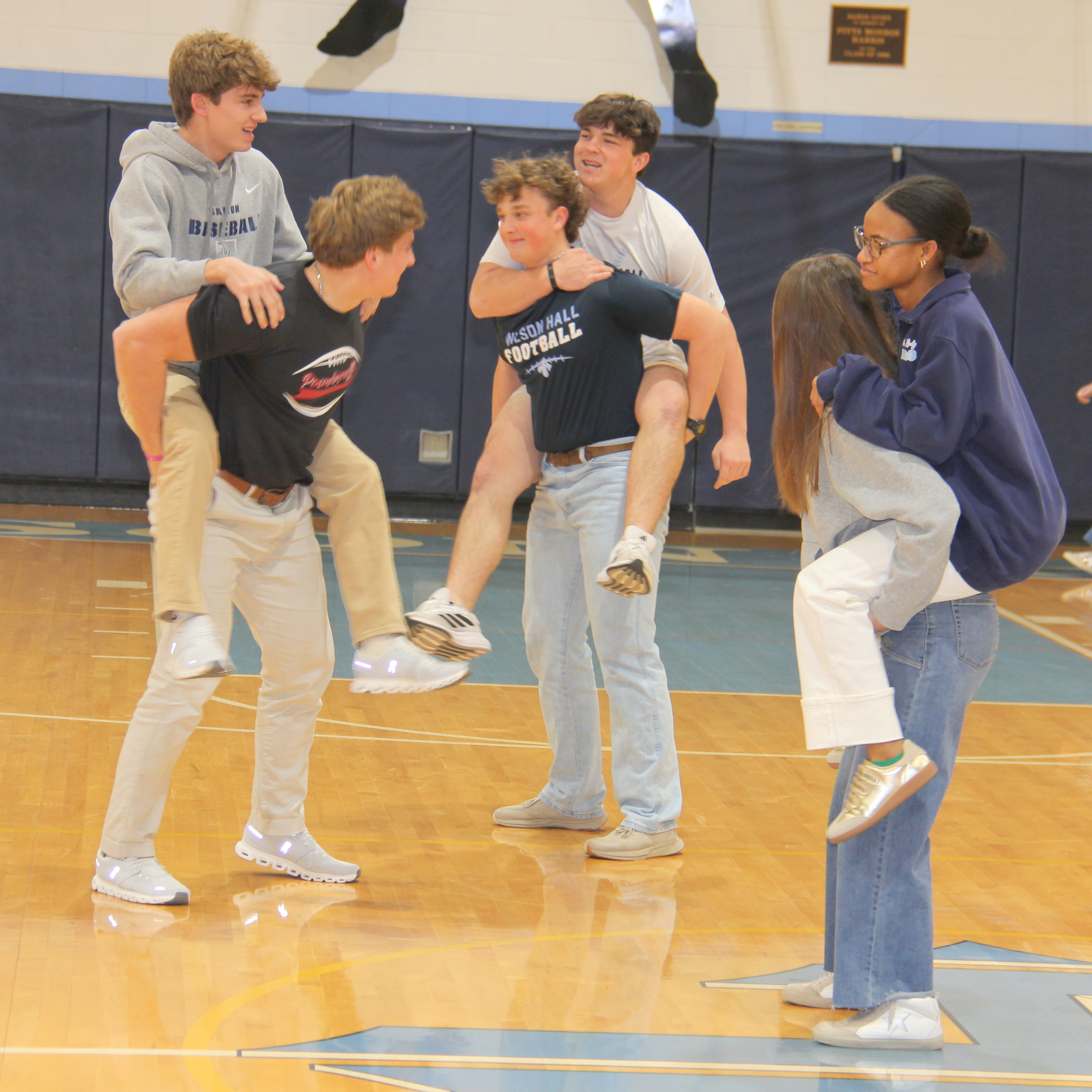 Kicking off the basketball season with festive energy, the Christmas Wrap Pep Rally brought school spirit to life as student teams raced to wrap a classmate the fastest. Cheerleaders performed a special Christmas dance routine, and players and coaches spoke to the crowd to build excitement for the Baron Classic tournament.
