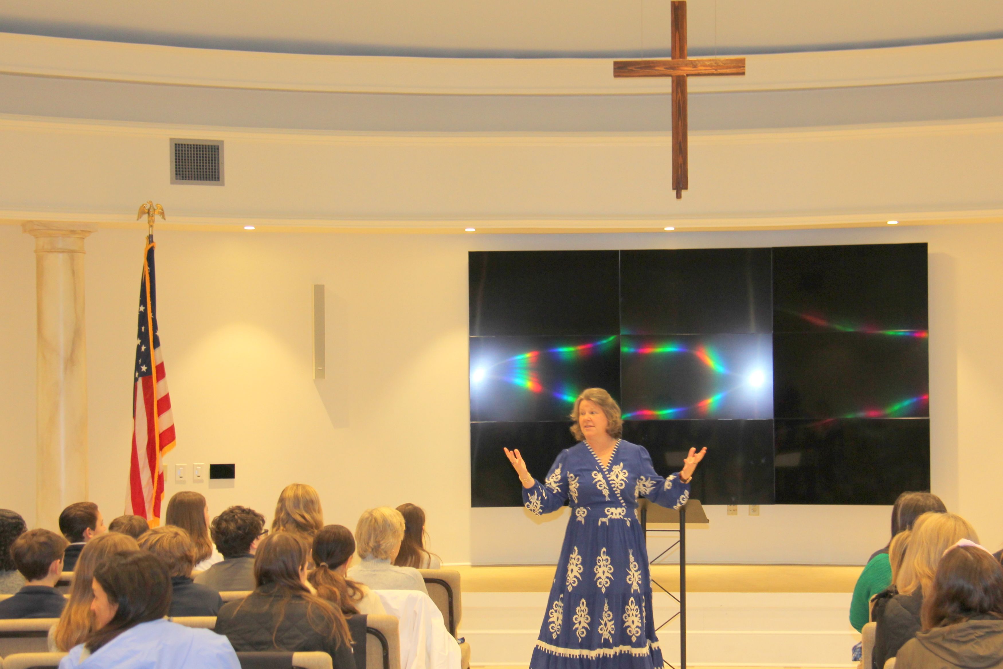 Challenging students and faculty to live out their faith, Mrs. Lori Brown, history and theater teacher, served as the Chapel guest speaker, sharing a message grounded in scripture from Micah 6:8, calling all to do justly, love mercy, and walk humbly. She reminded the school community that we are all Barons who serve and represent our King, using the word BARON to highlight five biblical principles: Bold and brave, Acts justly, Reflects the King, Others before self, and Noble in character. The Chapel concluded with students and faculty joining together in prayer.