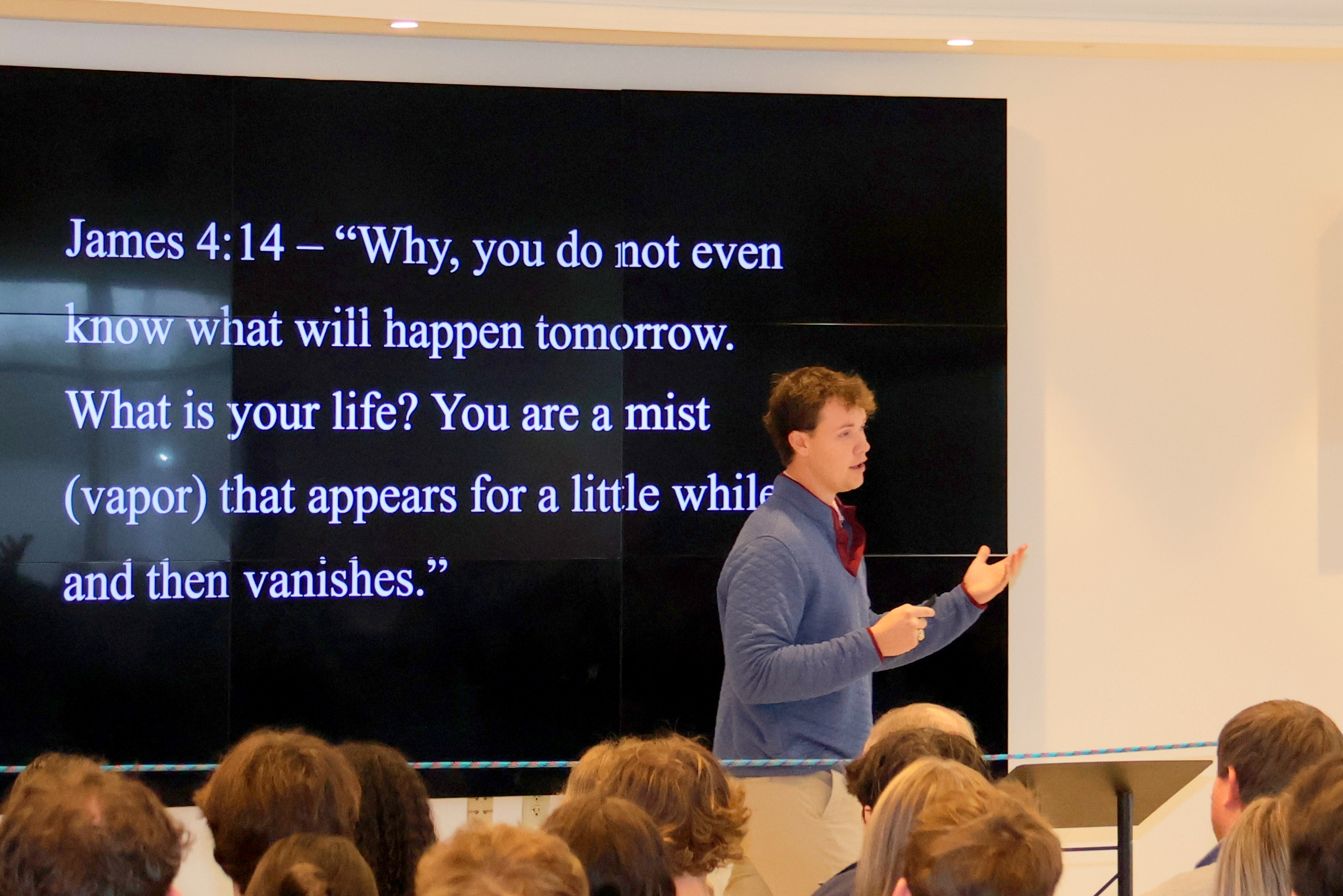 Challenging students to think beyond the moment during Chapel, Mr. Asa Dinkins of First Baptist Sumter shared an inspirational message rooted in James 4:14, reminding them that “you are a mist that appears for a little time and then vanishes.” With that powerful image in mind, he encouraged students not to waste their four years of high school but to reflect on how they wish to be remembered. Emphasizing that today’s choices carry eternal significance, he urged students to choose Jesus and trust Him to guide their lives with purpose and direction.